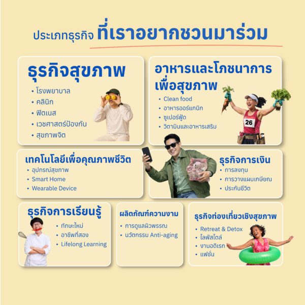 ภายในงานเรารวบรวมทั้งความรู้ แรงบันดาลใจ และโซลูชันหลากหลาย เพื่อช่วยออกแบบชีวิตยืนยาวอย่างมีความสุข งานนี้จึงไม่ใช่เพียงโอกาสทางธุรกิจ แต่คือพื้นที่สำหรับการร่วมสร้างสังคมที่ดีสำหรับคนทุกวัย