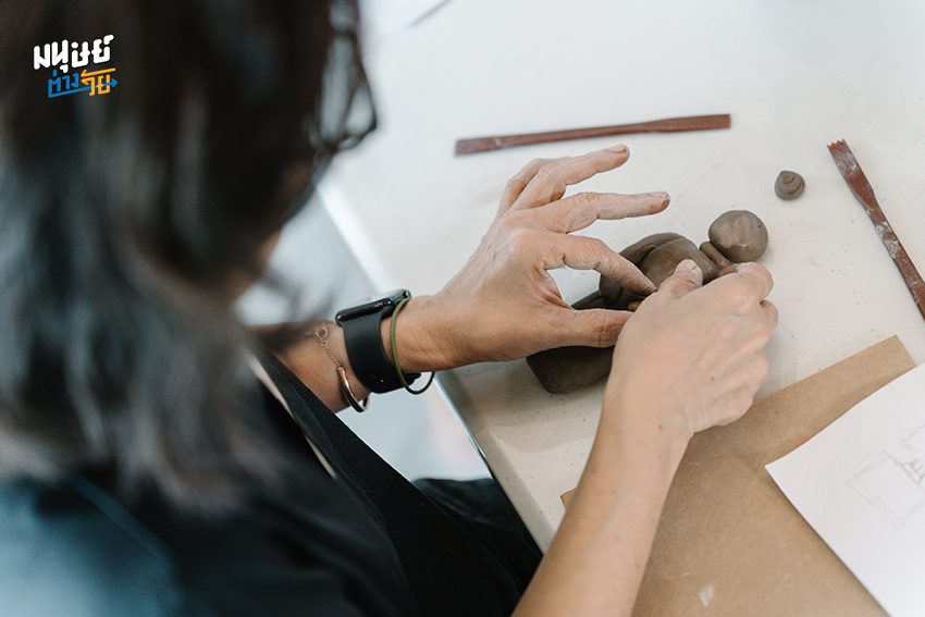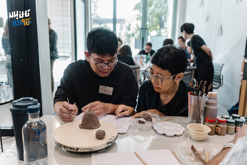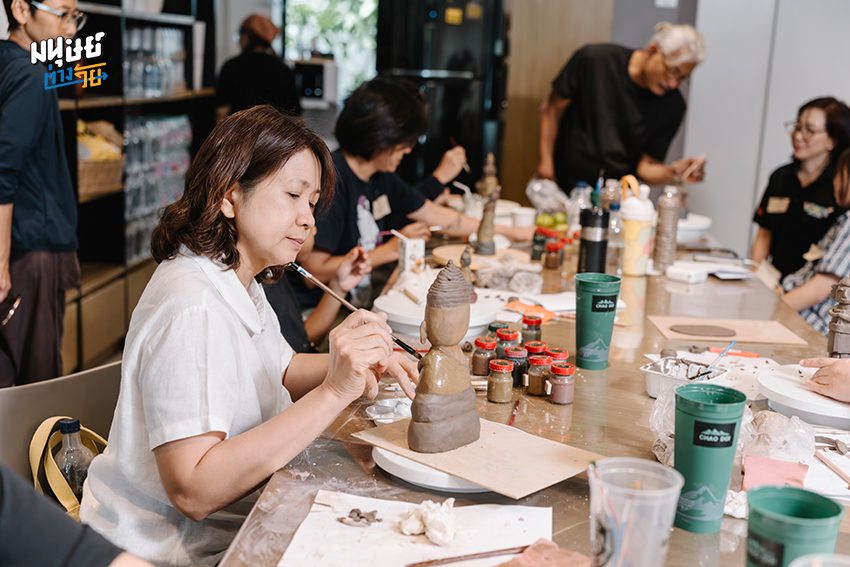 เมื่อวันอาทิตย์ที่ผ่านมาออฟฟิศของมนุษย์ต่างวัยถูกเปลี่ยนให้กลายเป็นห้องเรียนศิลปะขนาดย่อมที่เต็มไปด้วยผู้เข้าร่วมกิจกรรมจากหลากหลายช่วงวัย มีทั้งวัยทำงาน วัยเกษียณ วัยรุ่น และวัยเรียนที่มาร่วมปั้นพระด้วยกันในบรรยากาศอบอุ่นและเป็นกันเอง
