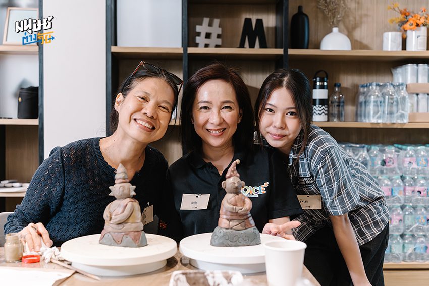 สำหรับสิ่งที่น่ารักที่สุดในวันนี้ก็คือภาพของคนต่างวัยที่นั่งล้อมวงโต๊ะเดียวกัน หัวเราะ แลกเปลี่ยน และช่วยกันแต่งแต้มพระในแบบของตัวเอง บางคนปั้นพระยืน บางคนปั้นพระนอน บางองค์มีรอยยิ้มเล็ก ๆ บางองค์มีร่องรอยนิ้วมือ และไม่ว่าพระที่แต่ละคนปั้นจะออกมาเป็นอย่างไร แต่ที่แน่ ๆ คือทุกองค์อัดแน่นไปด้วยความตั้งใจและความสุขในระหว่างที่ลงมือทำ